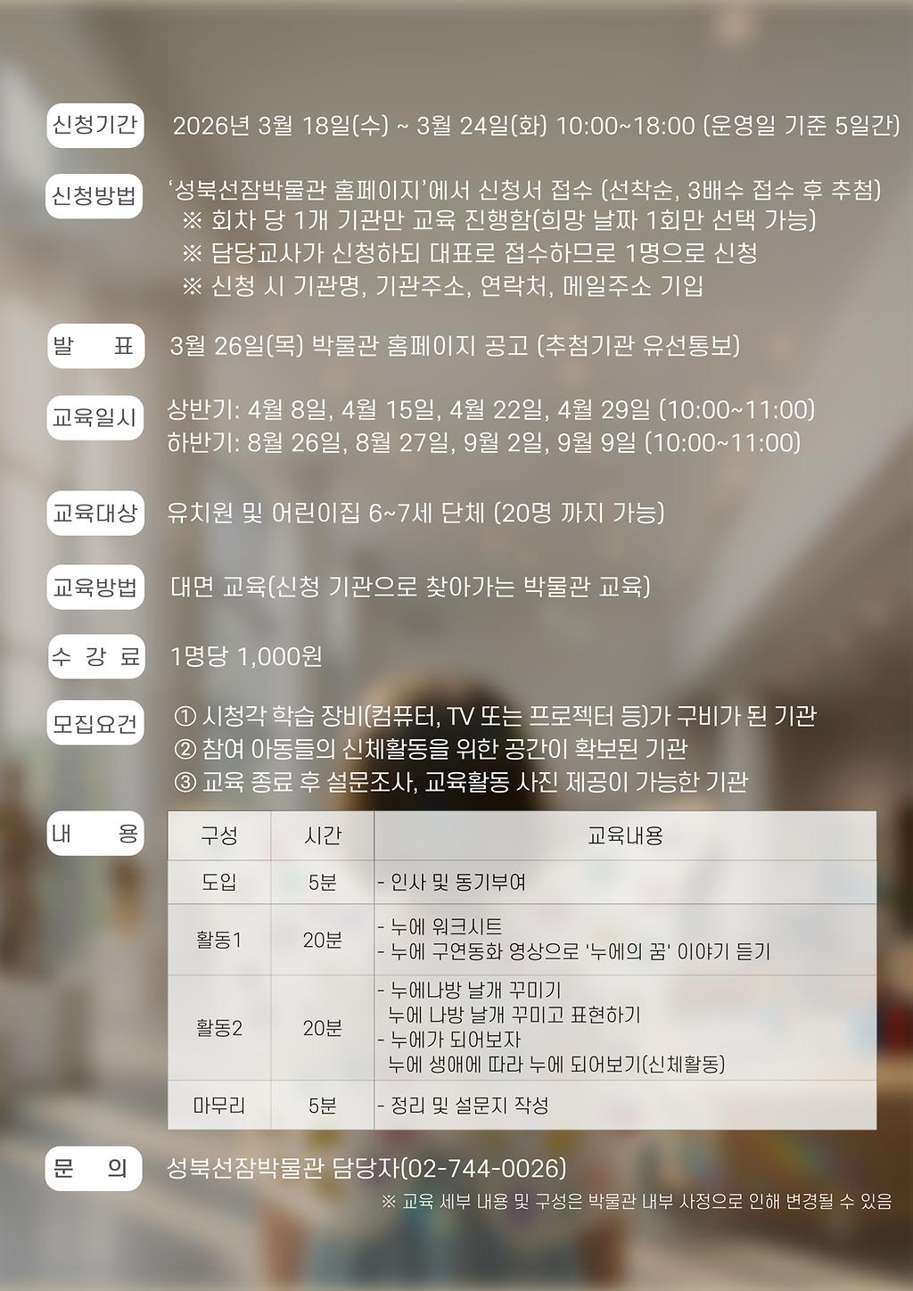 ‘성북선잠박물관 홈페이지’에서 신청서 접수 (선착순, 3배수 접수 후 추첨)