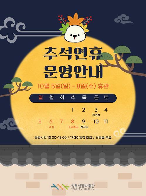 성북선잠박물관은 추석 연휴기간 아래와 같이 휴관합니다.